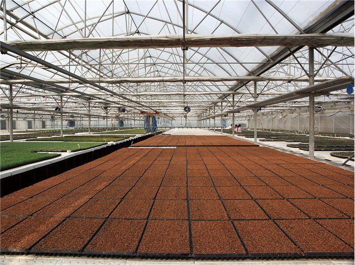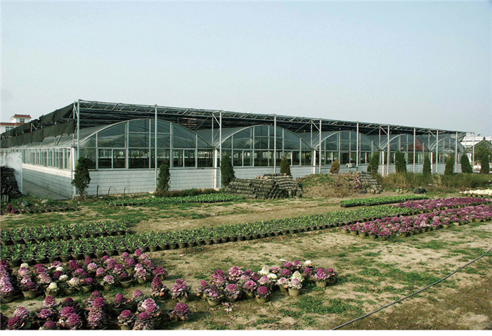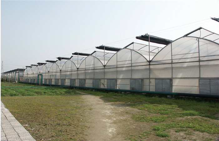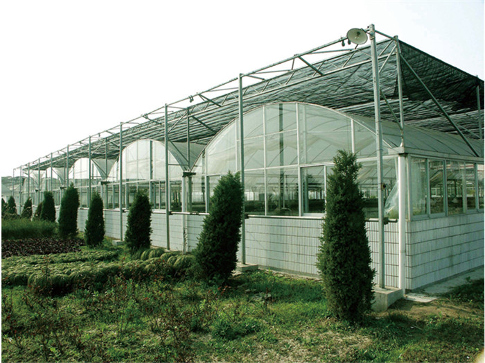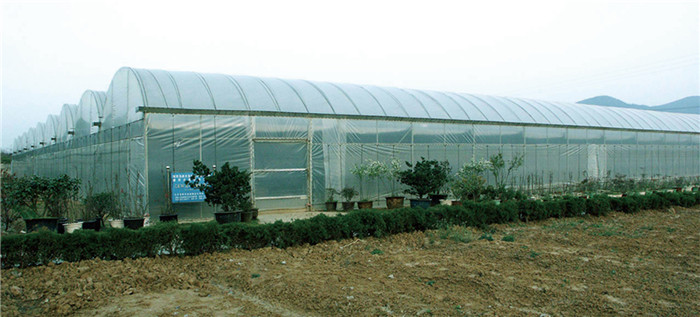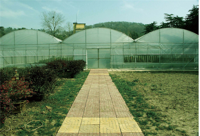 温室栋宽6-7.5m,柱间距3m,长度3m的倍数,宽度以栋宽为模数按用户需要任意连栋。温室主体采用热浸镀锌钢管联成网架结构。为全装配型,安装方便,既可升单栋使用,也可大面积连栋使用。温室主体框架抗风载0.5kN/㎡,抗雪载0.3kN/㎡,最大排雨量150mm/h.