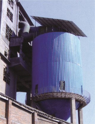 5、采用顶部进风,由中心风管导入除尘器下部。不仅进风均匀,有利于大颗粒的沉降,而且避免了红料进入滤袋烧坏布袋现象的发生。