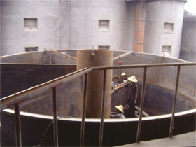 4、壳体采用圆锥形结构,占地面积小,强度高,便于老线的改造。