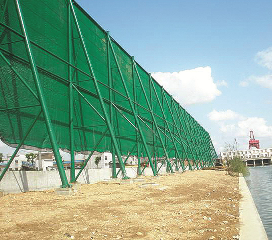 经过近几年的推广使用,挡风抑尘墙(网)的综合抑尘效果非常明显。单层“挡风抑尘墙(网)”的综合抑尘效果可达65%-85%,双层“挡风抑尘墙(网)”的综合抑尘效果可达75%-95%。尤其是该技术相对于其他环保技术工艺还具有投资费用低、技术设备可操作性高、使用、维修工作量小,“挡风抑尘墙(网)”在工作过程中不需要消耗任何动力,即该技术不需要运转费用等显著特点。