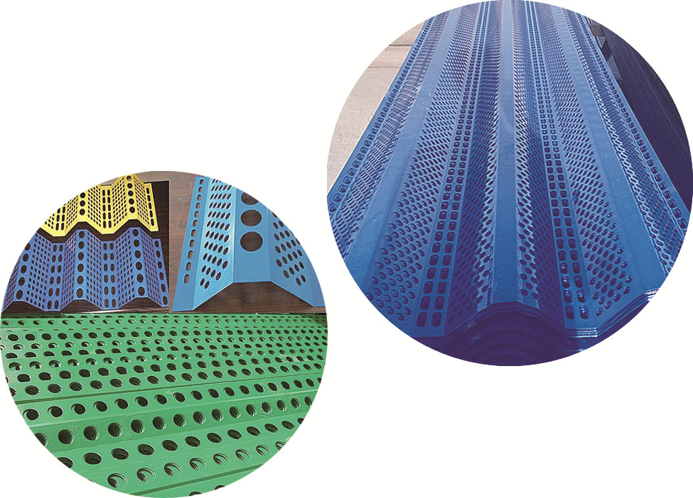挡风抑尘板使用的材质可以根据其使用目的、环境状态、客户要求不同而不同,可采用金属材料、高密度聚乙烯、EVA树脂等。挡风抑尘墙建成后不仅外形美观,维护成本低并且具备防火、防盗等优点,挡风板颜色可根据用户的要求或周边环境来选定,既可以美观周边环境,又可以起到挡风抑尘的效果。被广泛的应用于:电厂、煤矿、港口、码头储煤场、露天料场及建筑工地、道路工程临时建场所等。
