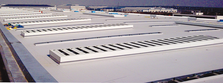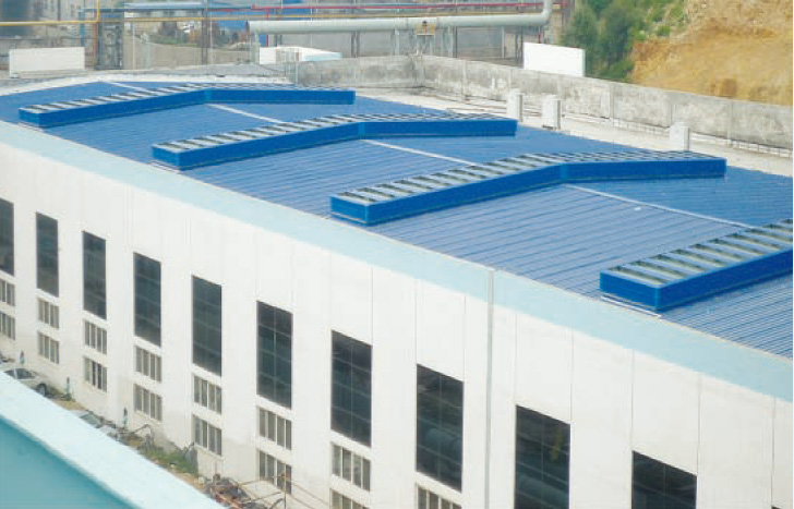 2、免除了所有建筑用部件,而由连续屋顶薄型通风设备自行支撑,因而大大减轻了重量,建筑造价也因屋顶负荷减轻