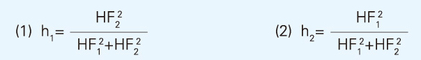 由自然通风原理可知,当进、排气量为定值时,降低中和面位置的关键手段,就是合理协调进、排气口面积的比值。当进气口面积F1大于排气口面积F2时,则中和面的位置即低,反之,当排气口面积F2大于进气口面积F1时,则中和面位置即高。当不考虑局部机械通风的影响时.由厂房进气量等于排气量的原理,即可推导出以下计算公式