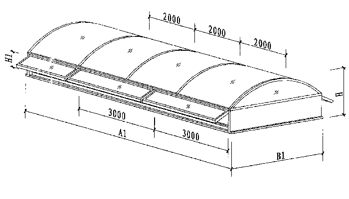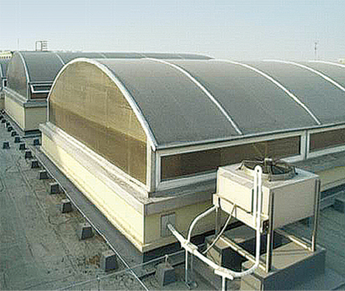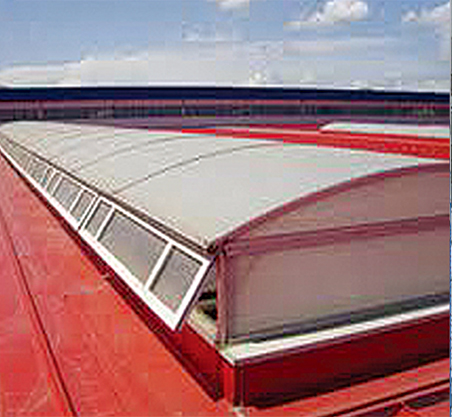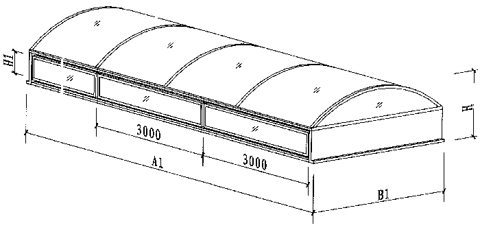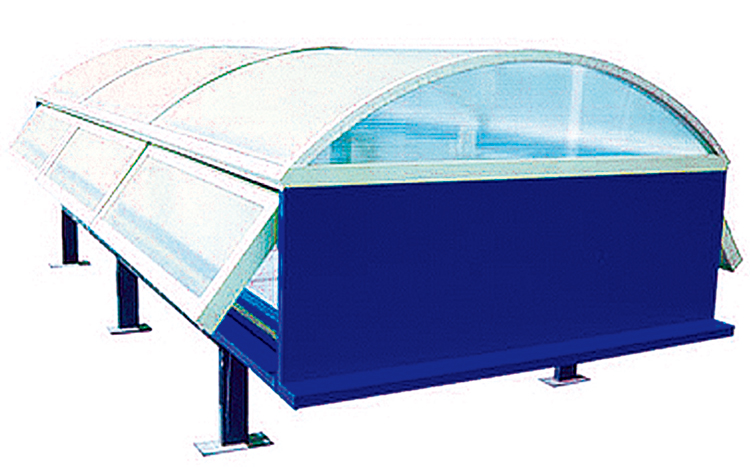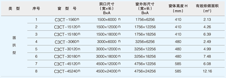 该型电动采光排烟天窗顶部为圆拱形,夏季有利于排水,冬季不易积雪,适合用于平时以采光为主,需要经常开启通风的建筑,其最大开启角度为60度。