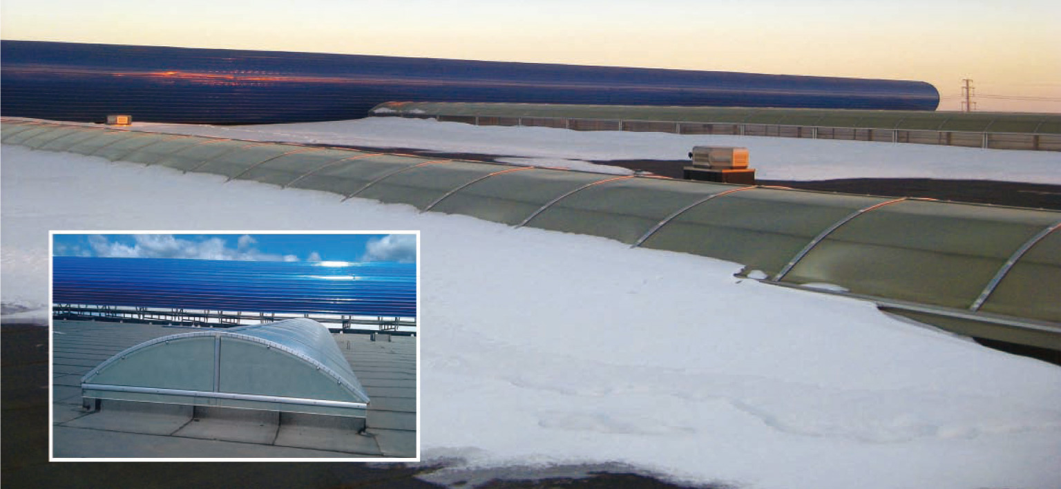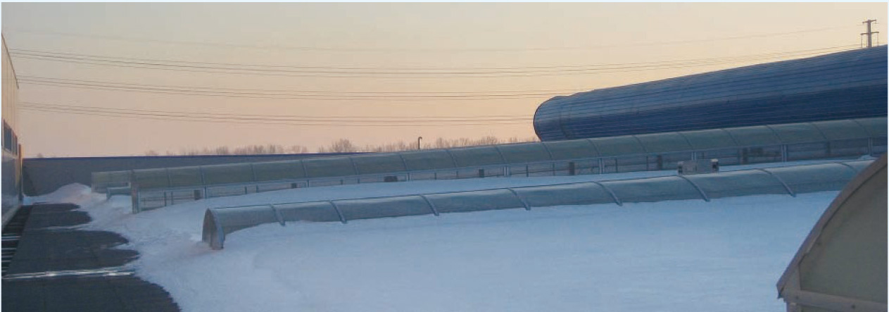 1.保温采光带的采光板采用1.5+1.2厚双层FRP板材(Fiberglass Reinforced Plastic玻璃纤维增强聚酯)。