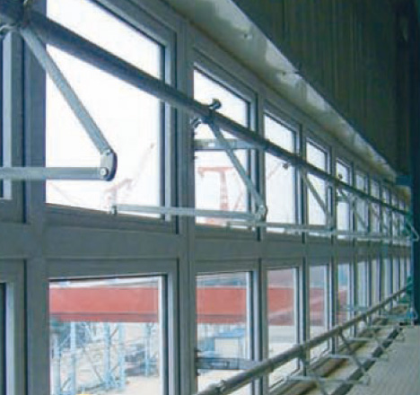 中悬开窗机适用于一般工业厂房、仓库、车站候车室、候机楼、游泳馆、大型会堂等现代建筑的中悬天窗(侧窗)的启闭;可与铝合金窗、塑钢窗、不锈钢窗、钢窗等材质的窗固定配套。