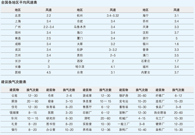 3、根据气象局的平均风速,查表确定地区的平均风量;