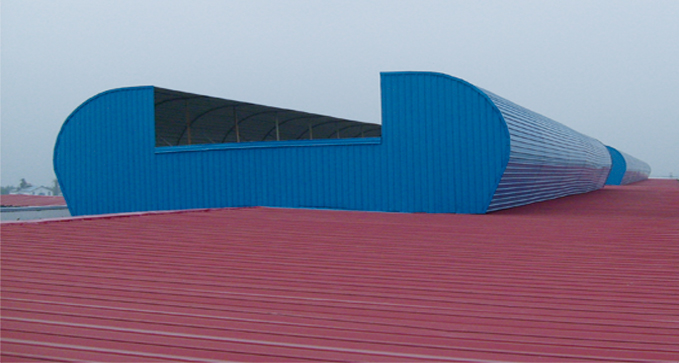 TC弧线型屋顶通风天窗具有自重轻,外形美观,安装方便,不用维护,无震动,消耗电能低等特点,并且该产品表面色彩选择范围广,可满足不同用户的不同要求,该产品被广泛用于电力、冶金、化工、石油、机械等部门的各类厂房通风。