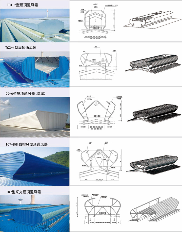 | 弧线型、强排风型、采光型等屋顶通风器 |