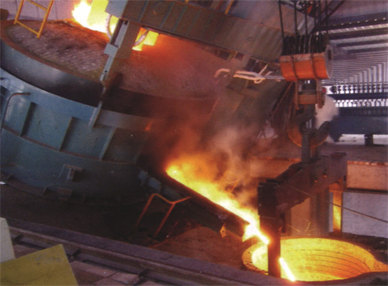 AOD转炉与一般转炉相比:冶炼时间长,吹氧强度低,脱碳速度小,CO含量低。在加料和出钢水时产生一定的国尘,同时AOD炉的高温烟气需要混风冷却,因此,要设置AOD炉的二次烟尘捕集装置,并将二次烟气与炉顶排烟混合。AOD炉的二次烟尘捕集采用导流式屋顶罩。