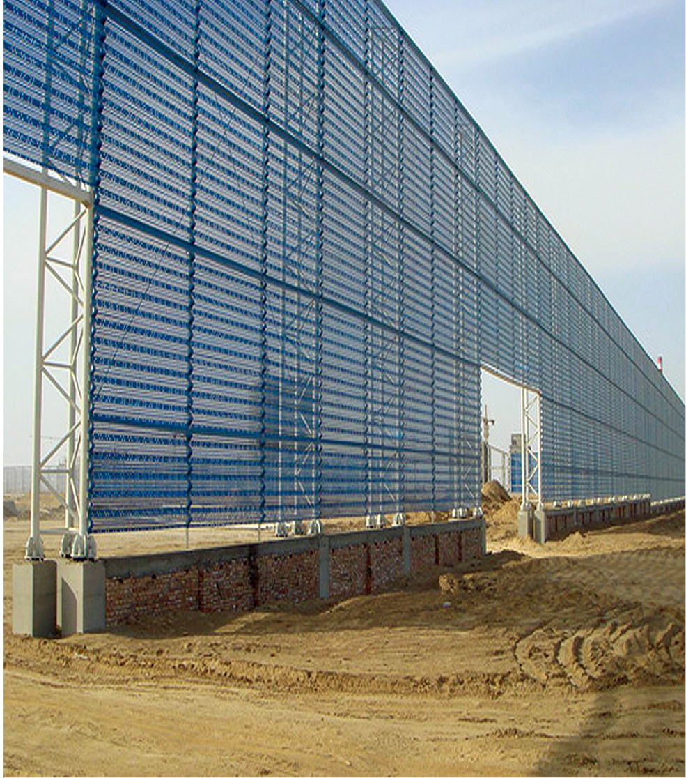 挡风抑尘板使用的材质可以根据其使用目的、环境状态、客户要求不同而不同,可采用金属材料、高密度聚乙烯、EVA树脂等。挡风抑尘墙建成后不仅外形美观,维护成本低并且具备防火、防盗等优点,挡风板颜色可根据用户的要求或周边环境来选定,既可以美观周边环境,又可以起到挡风抑尘的效果。被广泛的应用于:电厂、煤矿、港口、码头储煤场、露天料场及建筑工地、道路工程临时建场所等。